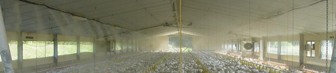 En été, les poules et les dindes  doivent  faire face à de fortes hausses de temèrature et donc subir un stress thermique important. Le cloisonnement et le nombre d'animaux créent une problématique avec une hausse de la température cause de mortalité rapide dans l'élevage. Pour abaisser la tempèrature dans les élevages ou les poulaillers on utilise souvent des ventilateurs mais maintenant en adaptant sur ces ventilateurs un système de brumisation nous avons une baisse de la température ambiante plus importante de l'ordre de 8 à 10 degrés. Enfin de compte,  le stress thermique est éliminé, la température du corps cesse  d'augmenter et donc augmente le risque de mortalité devient nul.