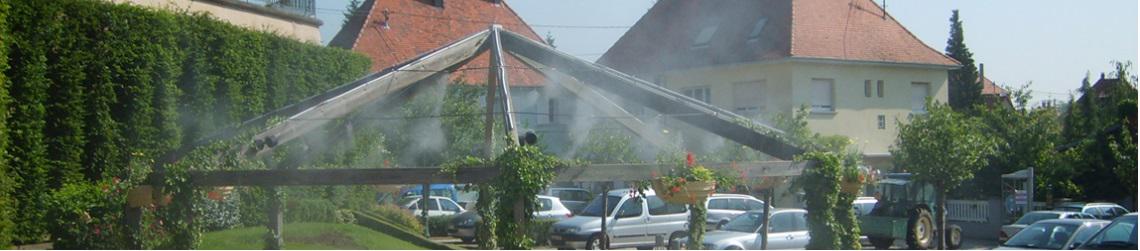 Nous des solutions dans nos gammes de produits. Il existe plusieurs systèmes de brumisation soit avec des rampes de brumisation  soit par colonne de brumisation. Ces types d'installation sont faciles à mettre en place et rapidement.